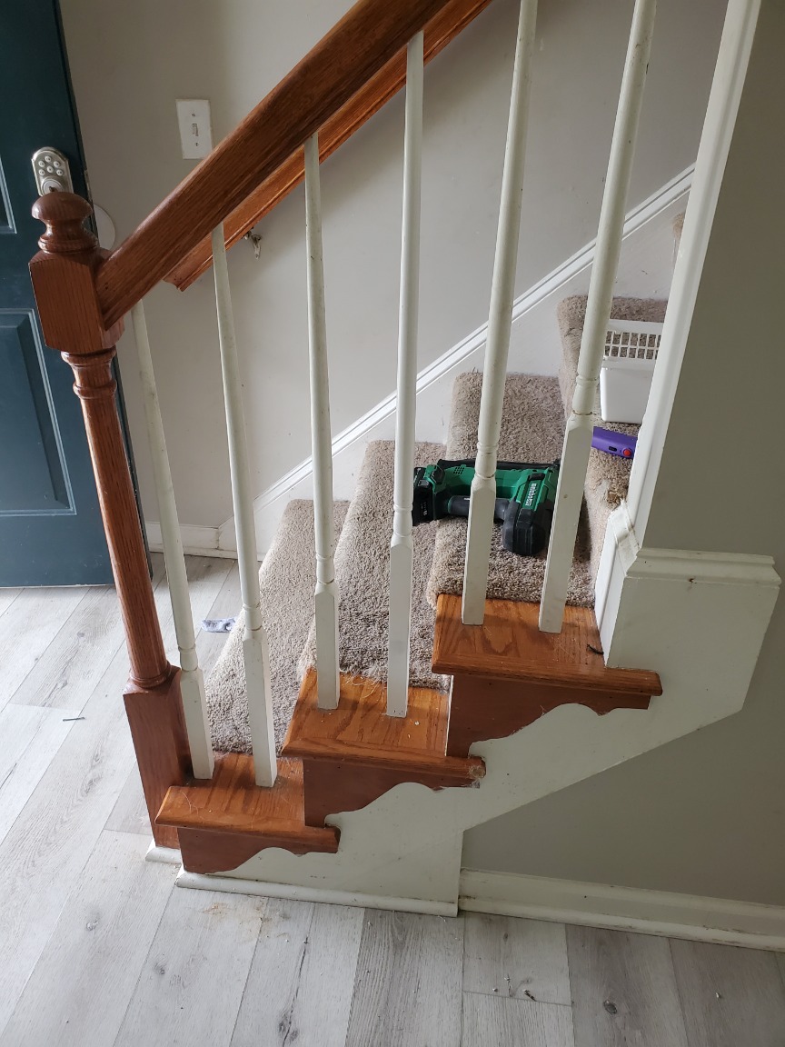 Replace carpet throughout due to pet damage and odor. 20x24, 16x14, steps