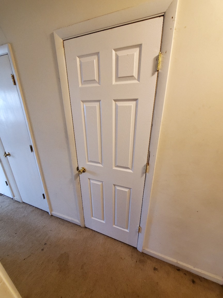 Replace 6 door slabs: bath, hall closet, laundry closet, bed3 closet, bed 2, and bed 2 closet