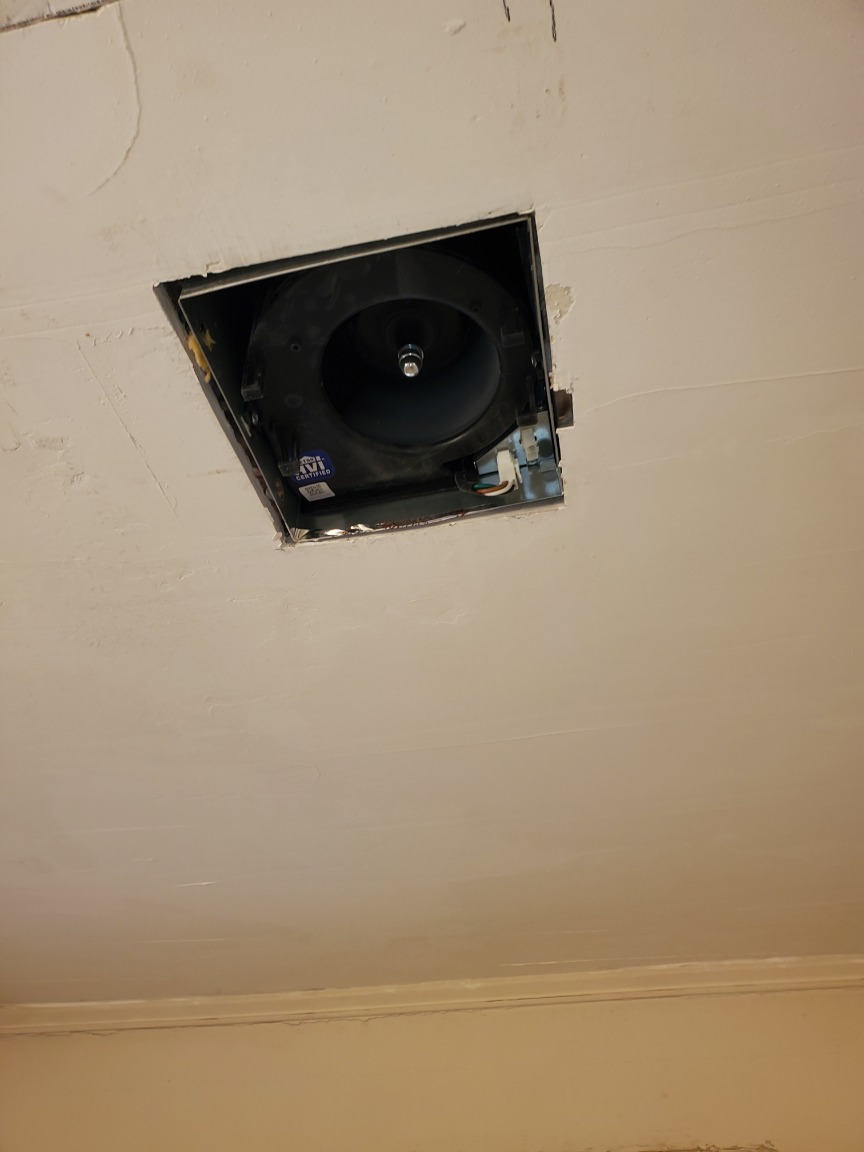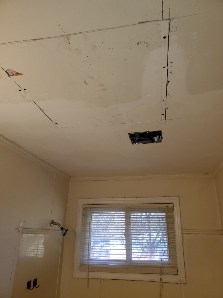 Repair bathroom ceiling and install an exhaust fan