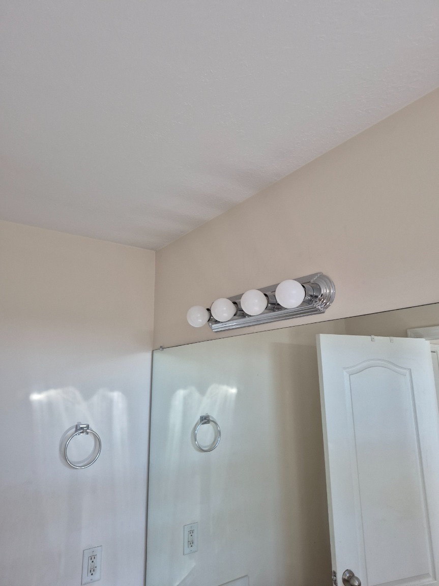 Replace vinyl flooring in guest bath. Cost includes resetting toilet and installing new shoe molding