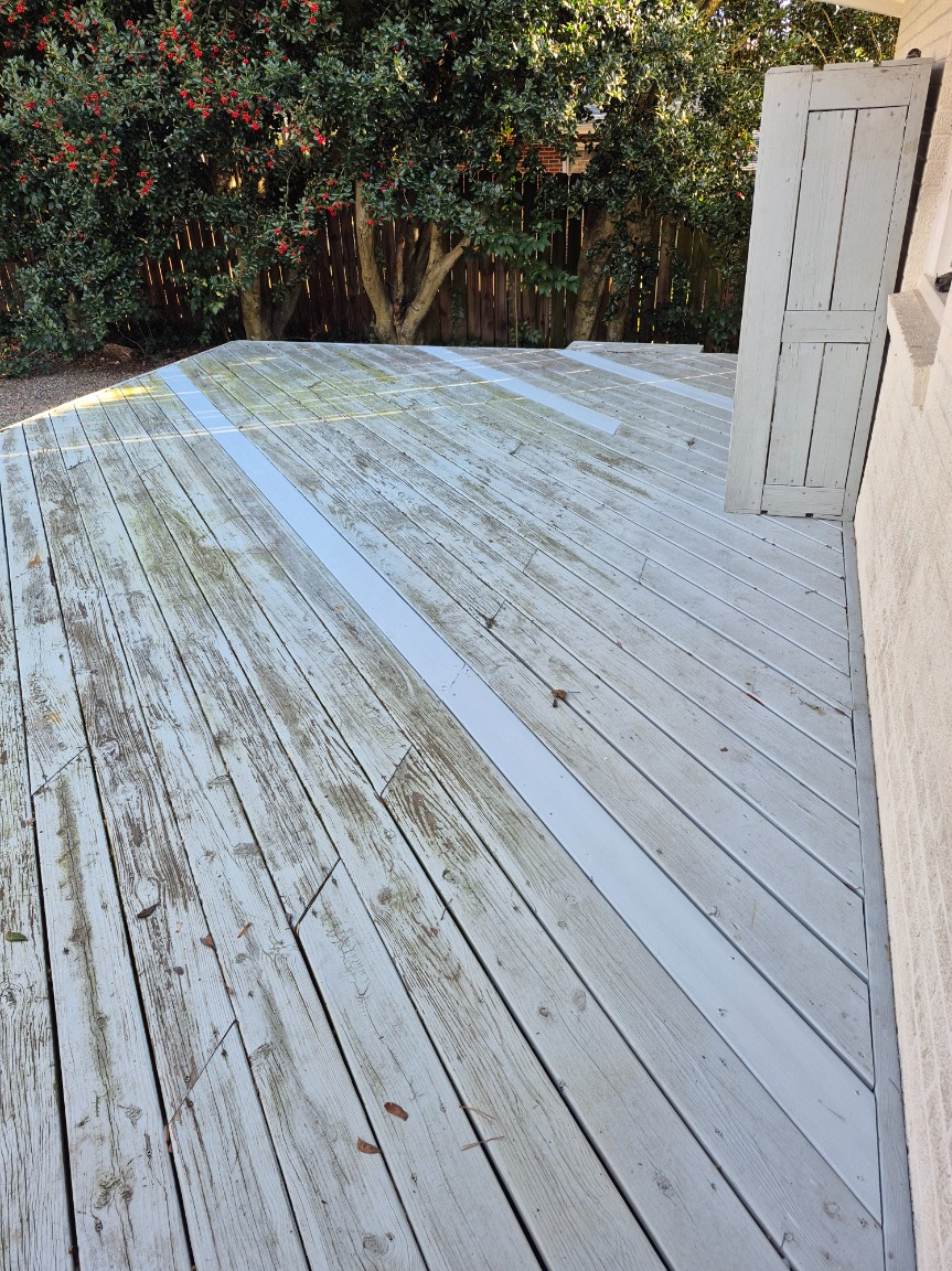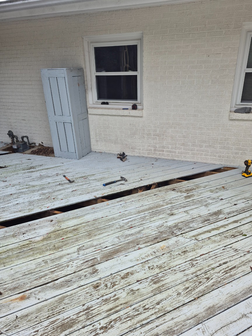 Repair rotten deck boards and stain to match existing color. 4 - 12ft boards