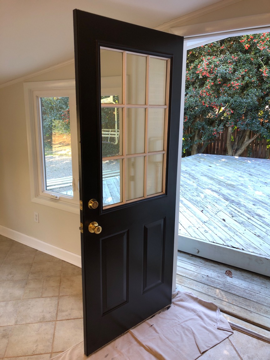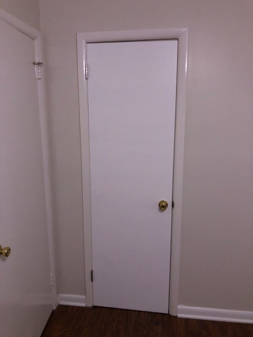 Install closet door slab in bed 3. Cost includes new knobs, hinges, and painting