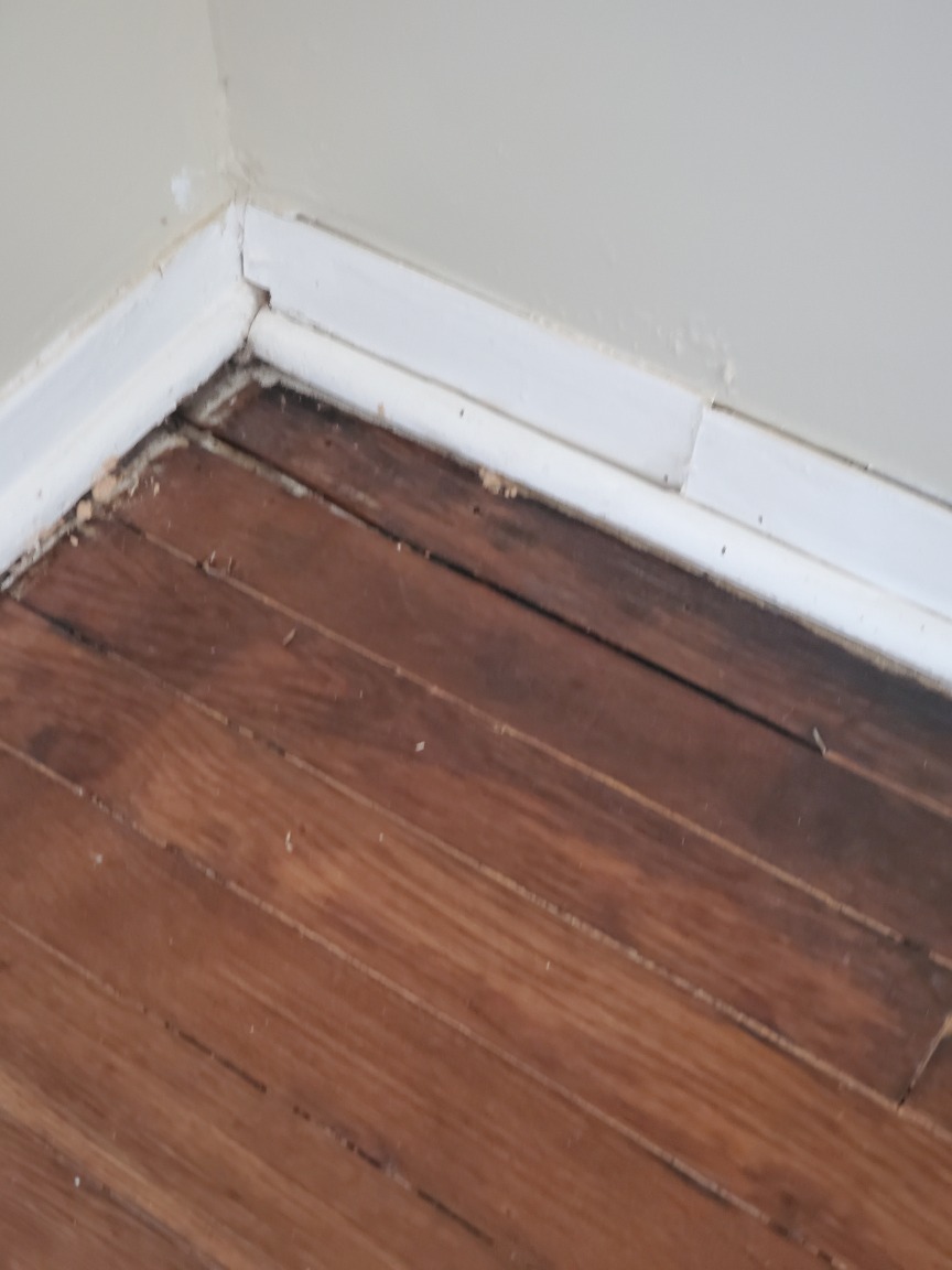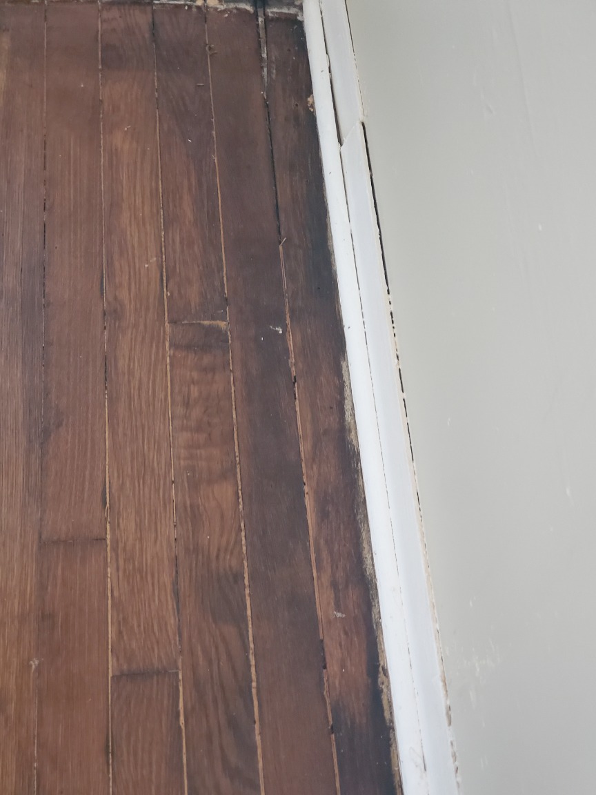 Will need to remove a section of hardwood flooring to access the rotten subfloor . Replace damaged subfloor and install new hardwood and stain to match