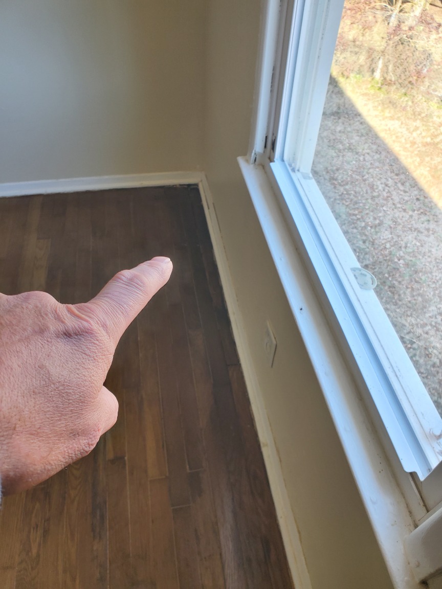 Floor is soft from left wall to the center of the window. 6" x 48" area