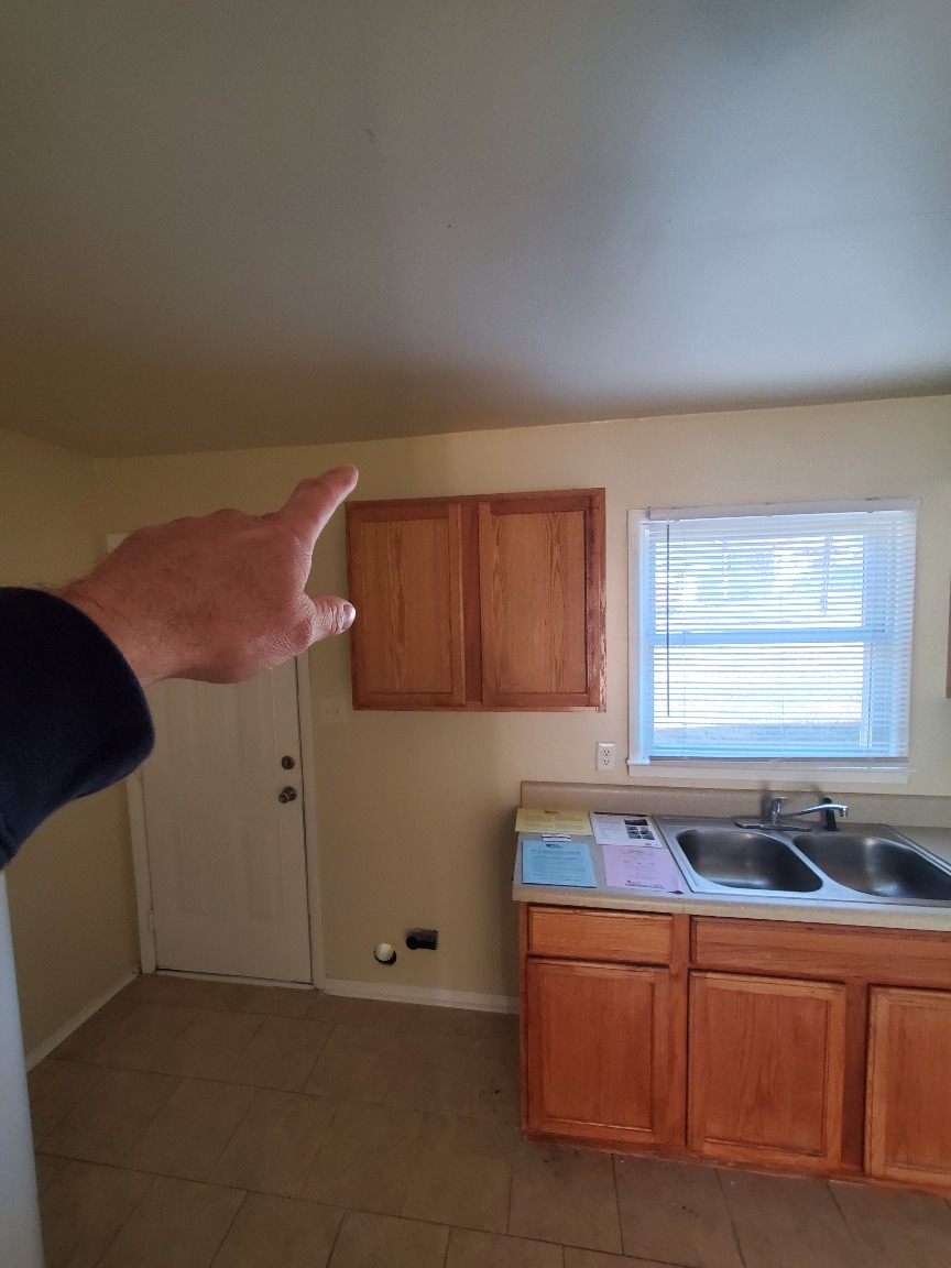 Could open kitchen ceiling and block underneath to save current wood flooring